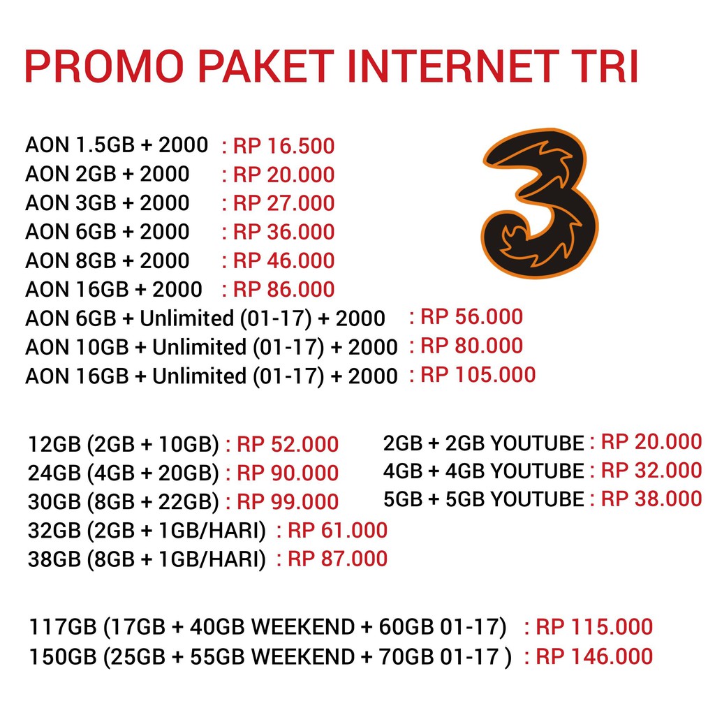 Nama produk paket data, manfaat kuota data, harga4 (rp), berlaku perpanjangan otomatis. Isi kuota internet murah, pulsa online, pln, voucher game, tagihan ppob. Perdana kartu tri 3 three internet 4g kuota 33gb 24 jam nasional. Voucher kuota aon 2gb / tri always on 2gb tri 2gb, rp17.950. Voucher internet, voucher three, bm 3 gb lokal .